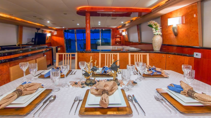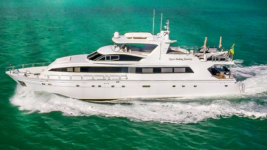 This one hundred two foot Italian-designed luxury yacht charter is the perfect choice for sailing the Bahamas for a group of up to ten people. While the spacious cabins and the large salon are incredibly comfortable and luxurious, the sixty foot sun deck, full service wet bar, and Jacuzzi along with the thirty foot aft deck and formal interior dining room make this yacht the perfect choice for the trip of a lifetime, and the chance to be the kings and queens of South Florida during your journey. Created with the Italian concept of "bella figura" or "impressive display" in mind, there is no better way to experience the beauty of the Caribbean.