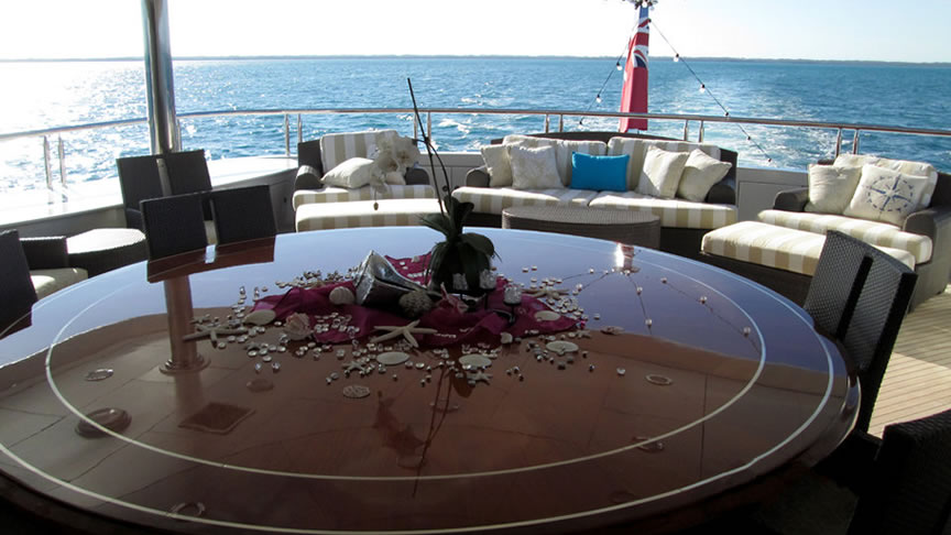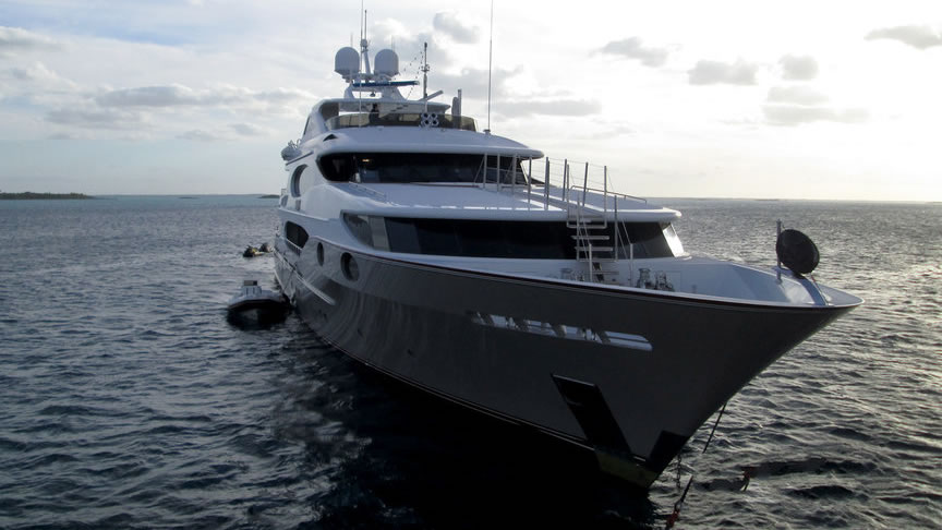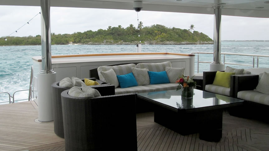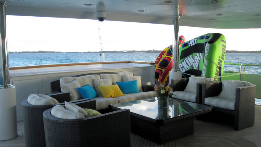 You will be escaping on a 150'-165' luxury yacht, with 3 spacious decks, a Jacuzzi, and 4 guest cabins, including a master suite and double beds in the other 3 rooms. This mega yacht sleeps up to 8 guests comfortably. In addition, guests will have access to all of the boat's water toys, which may include waverunners, seabobs, paddleboards, kayaks, snorkel gear, water skis, wake boards, and assorted inflatable toys. All of these details will be confirmed once your charter group has been locked into a specific charter date! The charters this season will be 3 days, 2 nights and the charter fee will be $40,000. This charter fee covers round trip economy airfare to/from TBD location in the Caribbean for everybody in the group (we recommend keeping the number of guests between 5-6 people), accommodation the night before and the night after your charter, all food and beverages on the yacht, and a fully planned itinerary and all inclusive boat activities (beach picnics, snorkeling, water sports, boat toys, etc.) There is a $1,000 APA fee that is taken as a deposit before the charter begins and is used in the event that the guest requests any one item over $100 that is not already on the boat (i.e. imported fine caviar, a magnum bottle of champagne, a special offsite scuba trip) and you will be notified ahead of time before this transaction takes place. At the end of the charter whatever amount was not used will be refunded back to the charter guest. Additionally, the charter group is responsible for a cash gratuity, which is a 15% minimum, with most guests last season giving 20% and above because they were so happy with the service provided. This gratuity is based on the wholesale cost of a 3-day charter, which is $87,500, so the standard tip would be around $15,000. Typically the head charter guest will hand the cash tip to the captain as they disembark the yacht and the gratuity is then divided up among all the crew members. Of course, this tip is at your discretion and any special requests or accommodations can be made with proper notice.